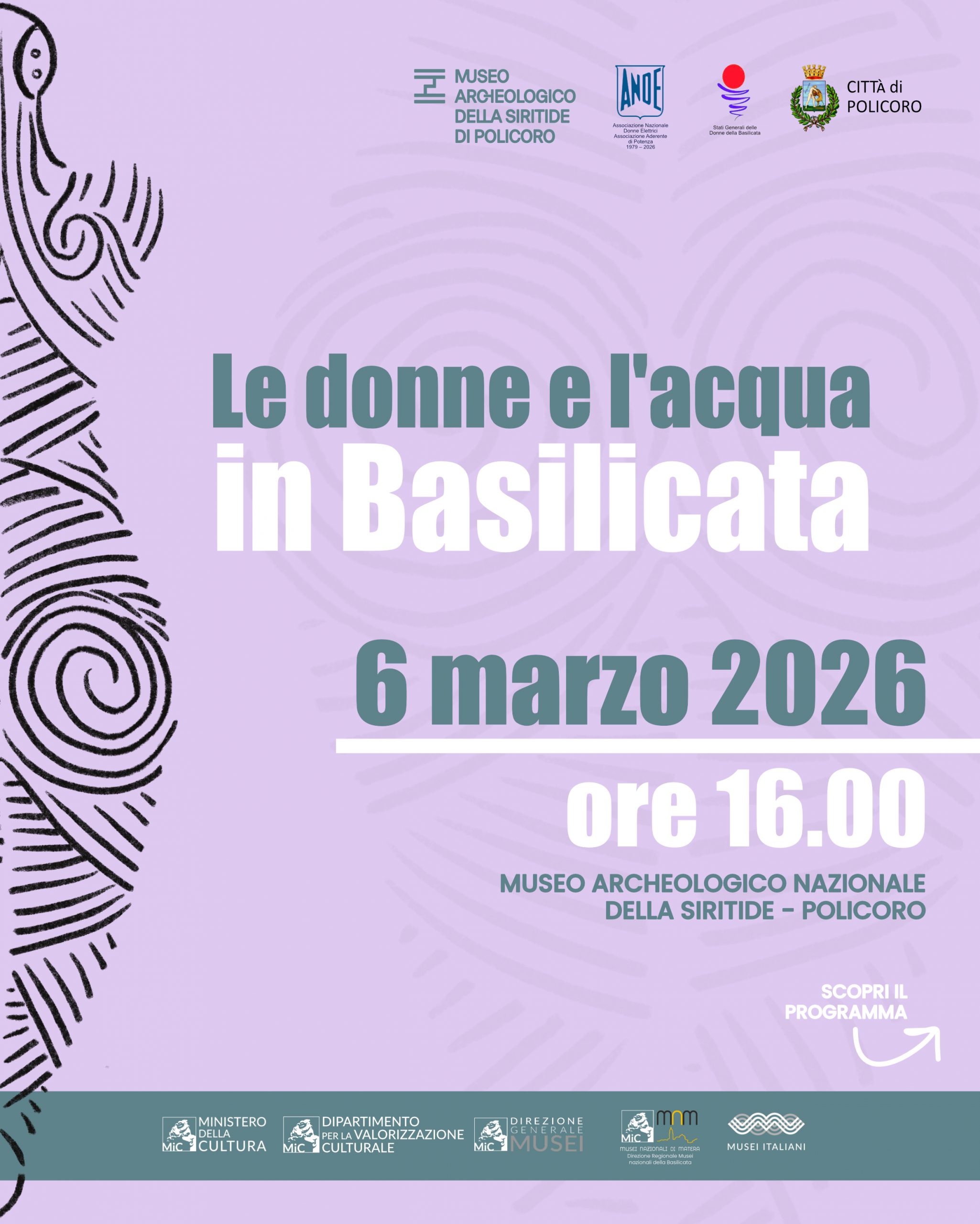 In occasione della Giornata Internazionale della Donna, il Museo Archeologico Nazionale della Siritide di Policoro, in collaborazione con ANDE – Associazione Nazionale Donne Elettrici (sezione di Potenza), gli Stati Generali delle Donne in Basilicata e il Comune di Policoro, organizza un momento di approfondimento dedicato al tema dell’acqua.